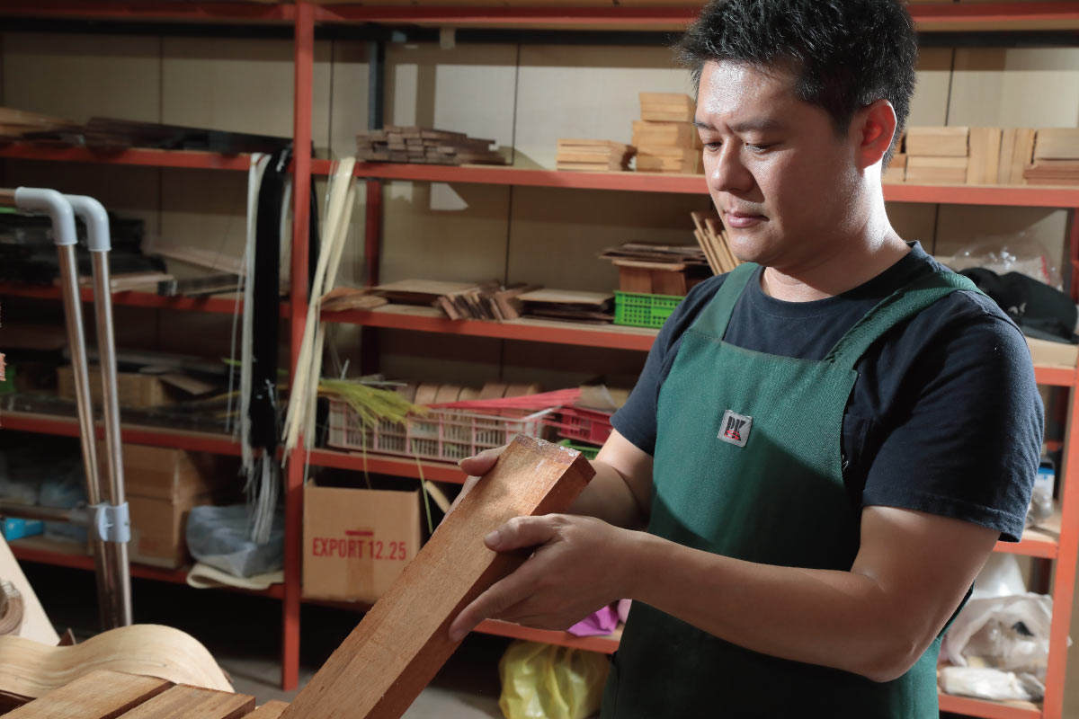 蒸煮木材的溫度不能太高、也不能太低,時間的長短也很重要。洪慶楓靠著豐富的經驗,根據木頭的種類和厚度,精準地掌控溫度和時間。