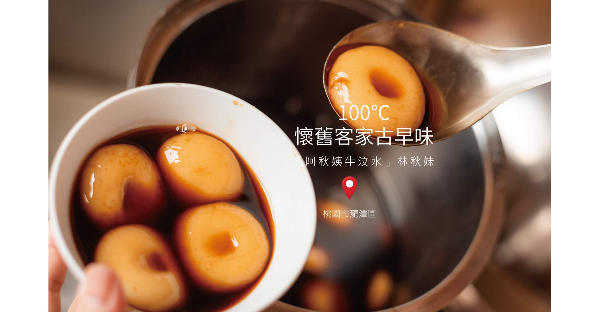 人稱阿秋姨的林秋妹,在龍潭三坑老街販賣牛汶水10餘年。當年老街因重新整治,帶來熱鬧的觀光人潮,擅長製作各式客家傳統點心的阿秋姨,便和女兒一起開設「阿秋姨牛汶水」,賣起客家菜包、碗粿、牛汶水等特色小吃。阿秋姨希望將媽媽傳承給她的美味客家料理,分享給更多人品嘗。