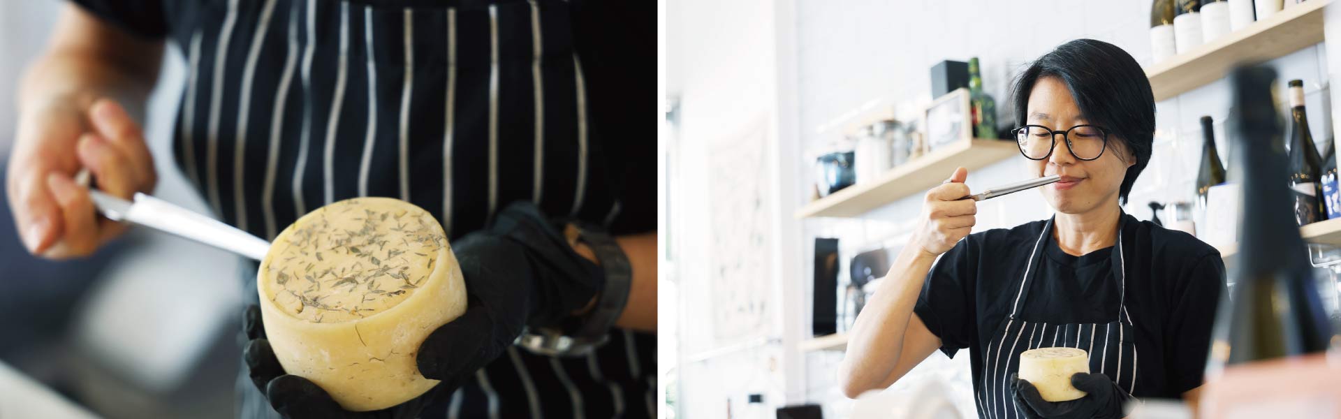 Brenda有感而發地表示,對Dida Creamery而言,Cheese的溫度,是愛的溫度、也是家的溫度!提及與「溫度」密不可分的Cheese,Brenda分享了幾款Cheese製程的秘密,例如:以新鮮生乳製作的「莫札瑞拉」(Mozzarella)起司,需以80~85℃的熱水塑形,成形後的起司風味每天仍會產生微妙轉化;「福爾摩沙熟成乳酪」則是以法國瑞士山區一代的Tomme工法,在12~14℃的環境裡自然熟成。Cheese的靈魂,在於酵母的活性,隨著乳酪師傅對於菌種的選擇應用,發酵過程將如同施展魔法一般,因著溫度的差異與精準拿捏,將呈現不同質地與風味的熟成乳酪!