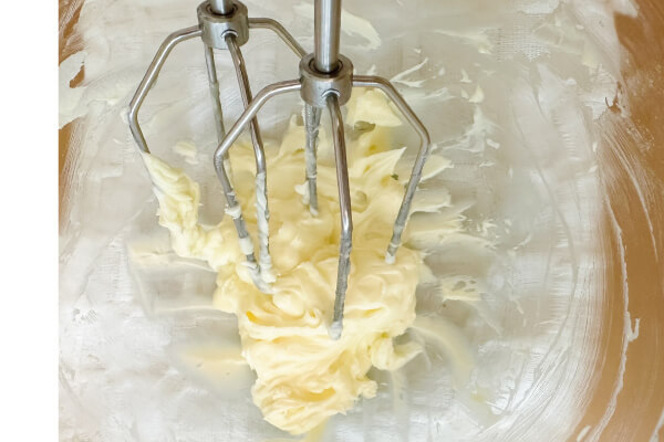 4. 打蛋器打至發白蓬鬆。