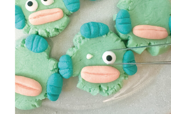 14. 放涼以後擠上融化巧克力,放上糖珠眼睛完成✅