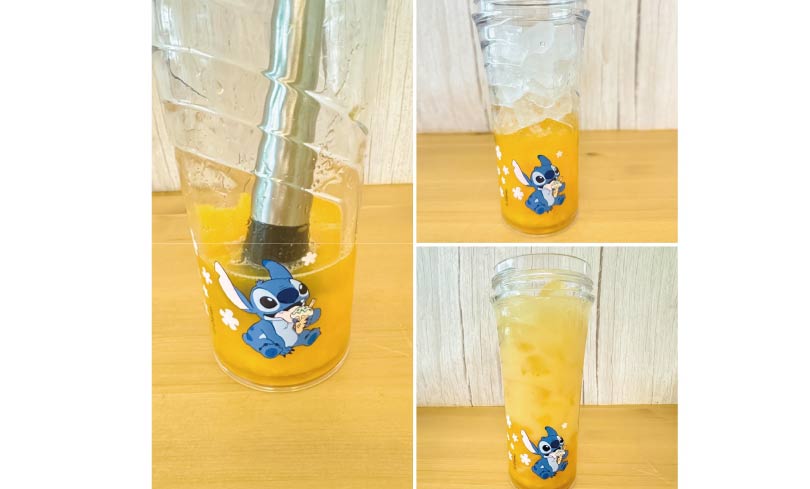 1.西瓜放杯子用攪拌棒搗成西瓜汁(或用果汁機)。 2.加入冰塊。 3.加入多多,搖晃均勻就完成囉!